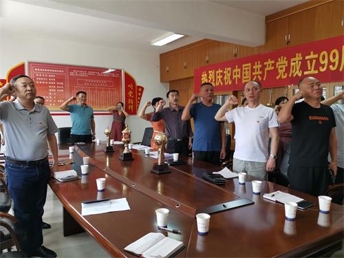 雙峰分公司黨支部組織全體黨員召開(kāi)慶祝建黨99周年座談會(huì),黨支部書(shū)記吳國(guó)柱主持座談會(huì),首先全體黨員在黨旗下重溫入黨誓詞。接著吳書(shū)記組織全體黨員學(xué)習(xí)了習(xí)近平總書(shū)記“關(guān)于黨的建設(shè)講話(huà)”片段。參會(huì)黨員就如何結(jié)合企業(yè)實(shí)際,樹(shù)立黨員的先鋒模范作用,發(fā)揚(yáng)黨組織的戰(zhàn)斗堡壘作用來(lái)促進(jìn)企業(yè)和諧穩(wěn)步、健康發(fā)展紛紛獻(xiàn)計(jì)獻(xiàn)策。最后黨員們進(jìn)行了思想交流,共商企業(yè)發(fā)展大計(jì)。