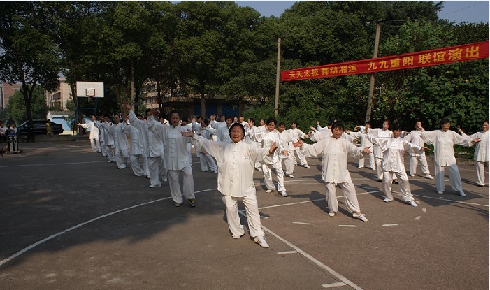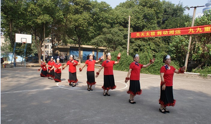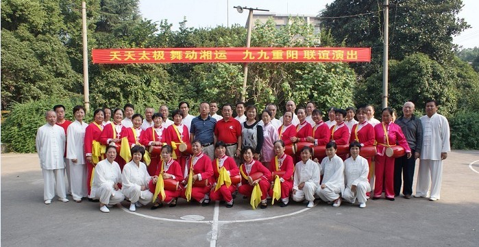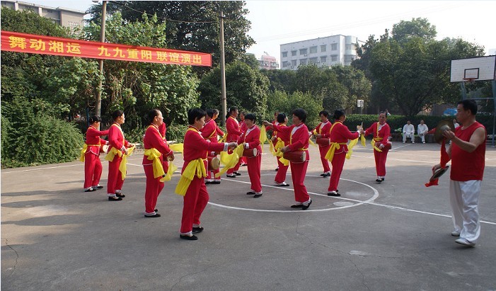 九時許,在歡快喜慶的腰鼓聲中 “天天太極 舞動湘運 九九重陽”聯(lián)誼演出拉開了序幕。